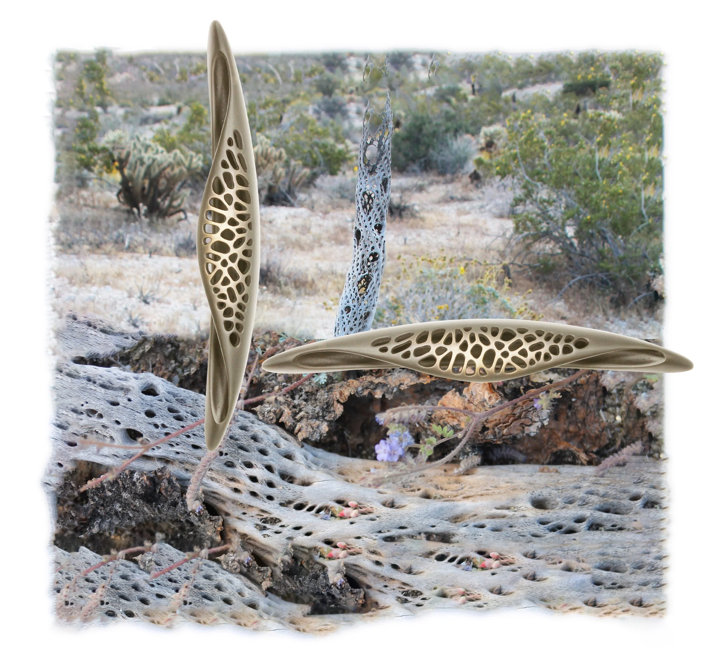 While far from being a microbe, the perforated forms of the Morphic design trace back to my early fascination with foraminifera — tiny ocean organisms whose lace-like shells left a lasting impression. Their natural geometry continues to inspire my sculptural hardware, reinforced by repeated encounters with desert landscapes and the skeletal lattices of cholla cactus. In both cases, the Morphic Collection of door handles can be seen as a translation of nature’s skeletal geometry — an echo of open frameworks transformed into functional art